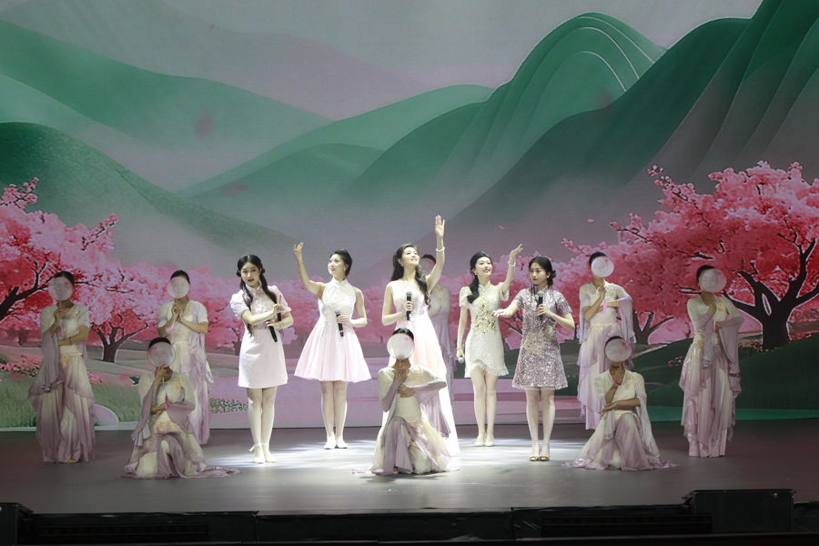 走进川沙影剧院,LED屏幕与层叠卷幕共同营造出十里桃林的梦境风光,花瓣纷飞间,革命节目让不雅众高歌过瘾。