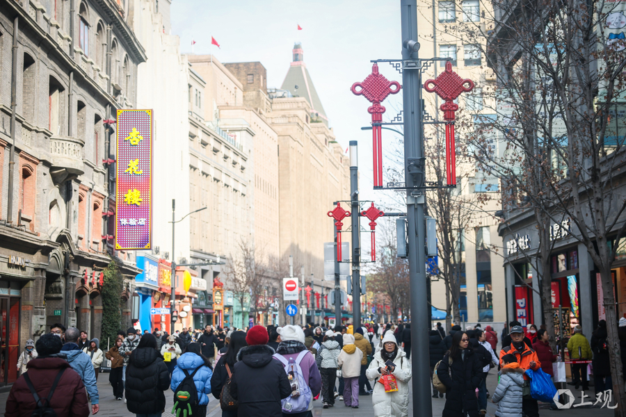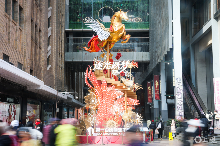 春节来这里逛街购物、欣赏街景,既能感受老上海的商业底蕴,也能体验到新时代的喜庆氛围。