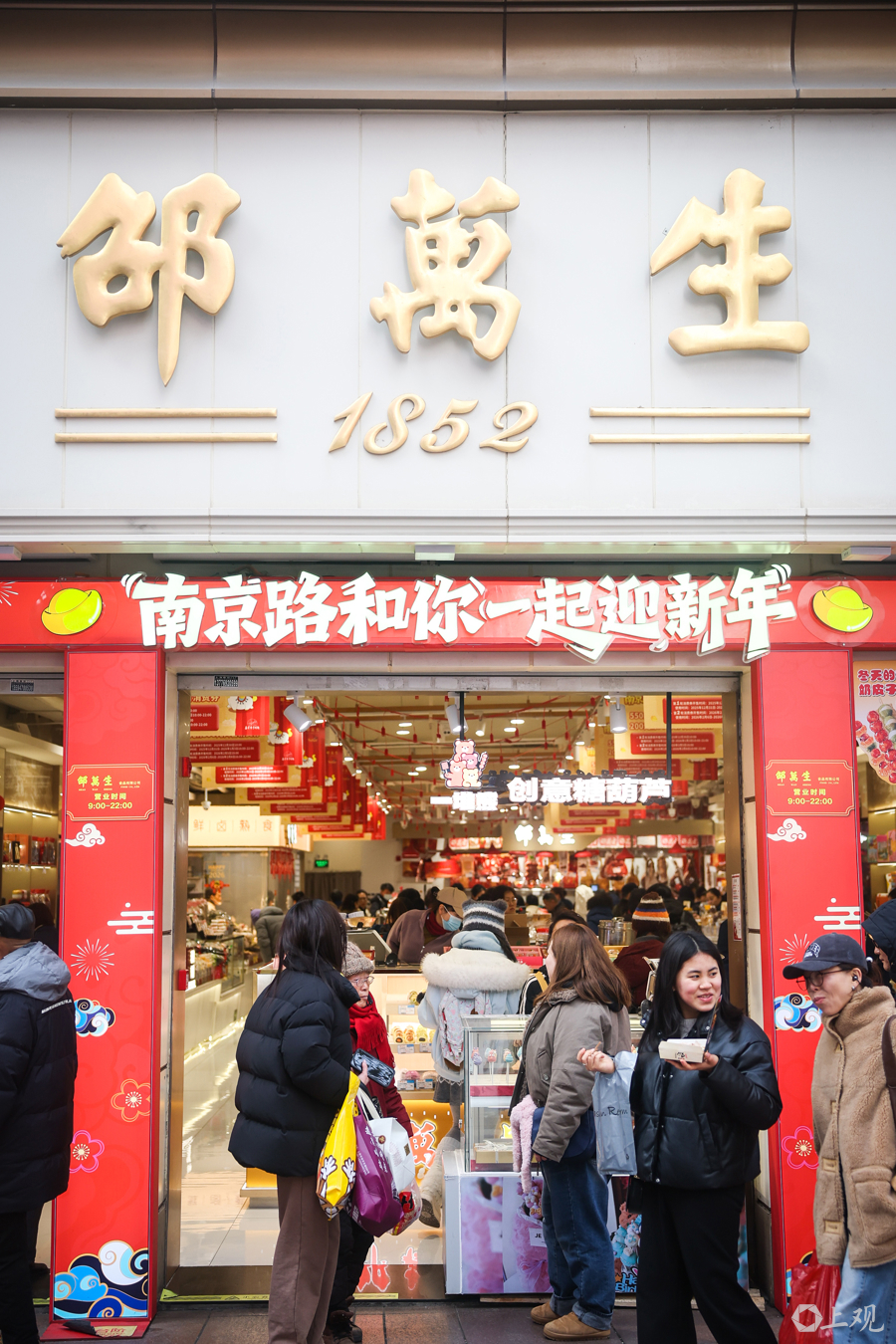 邵万生食品公司南京路步行街店入口处。