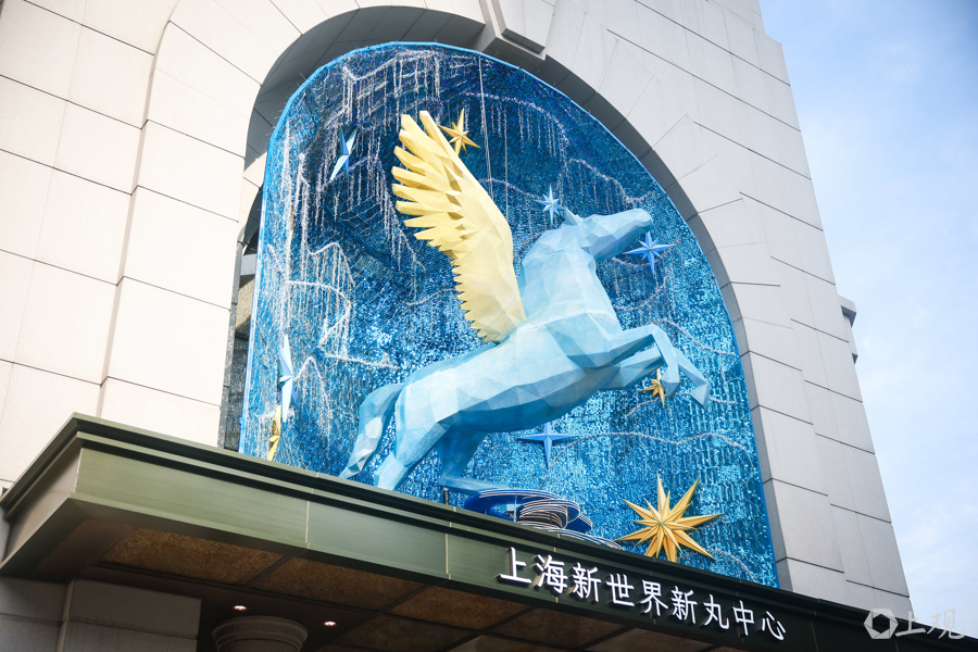 上海新世界新丸中心门头展示的马年生肖主题美陈。
