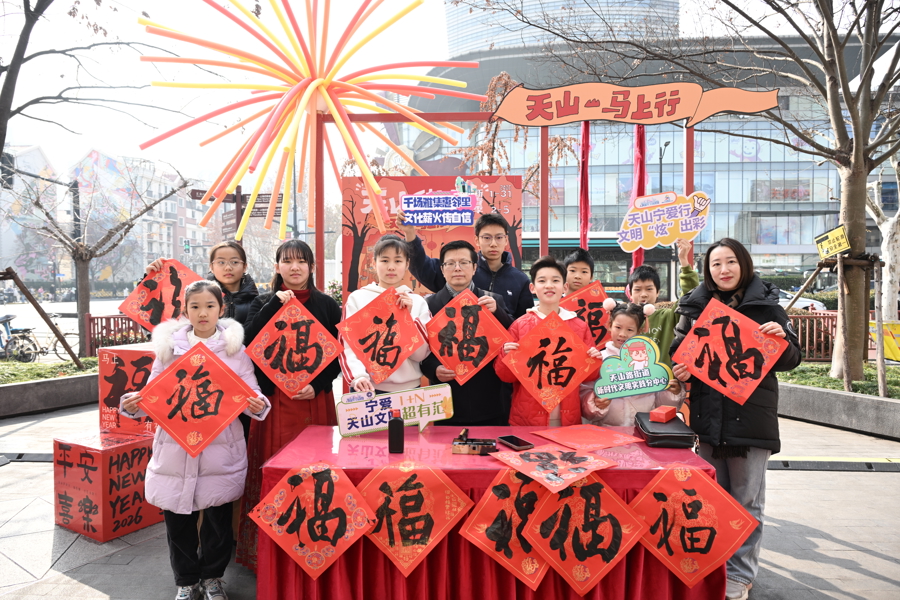 本次市集汇聚了五十余家商户与企业,分设年货采买、非遗体验、公益服务等多个区域。在非遗摊位前,写春联、做灯笼、捏面人等互动项目吸引了不少家庭参与。天山茶市的茶香、九华集团的年货、手艺人娴熟的技艺,交织出一幅鲜活的新春画卷。