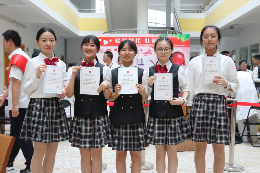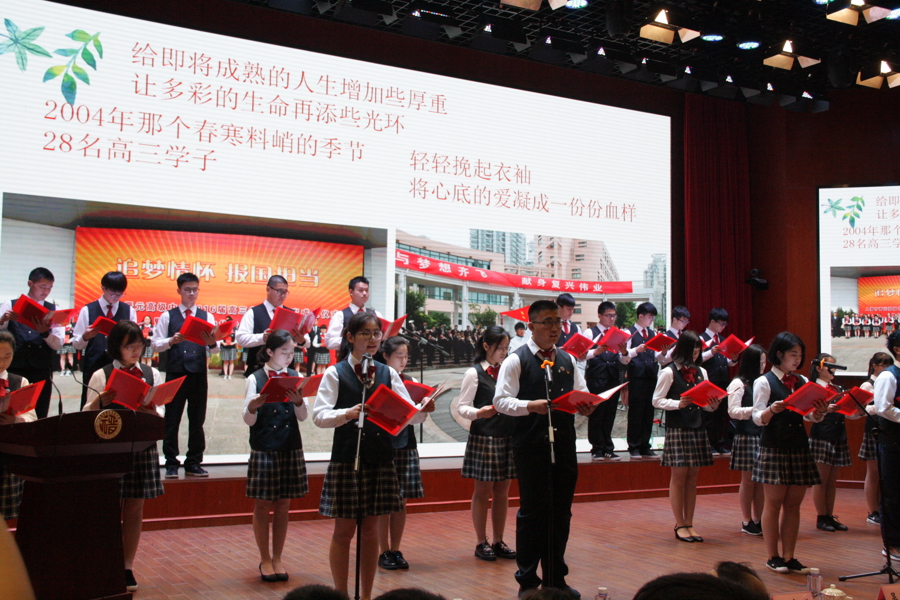 学校每年学生十八岁成人仪式上,学子们庄严宣誓。
