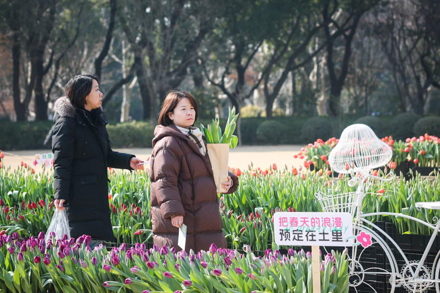 复兴公园内的郁金香采摘体验区,市民花29.9元就能亲手采摘10枝新鲜郁金香。