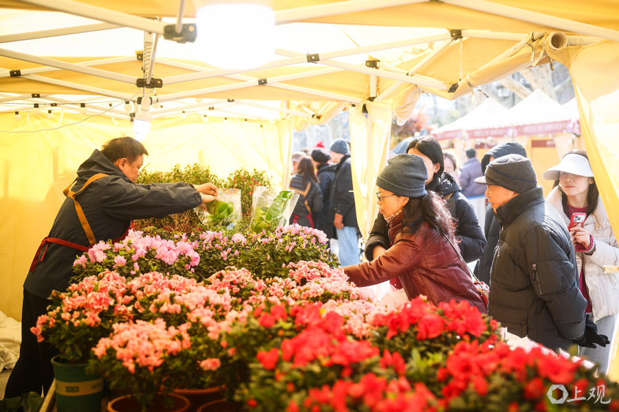 复兴公园的15个帐篷摊位里,汇聚水仙、金桔、仙客来等传统年宵花,以及洋桔梗、风信子等网红新品,满足多元需求。