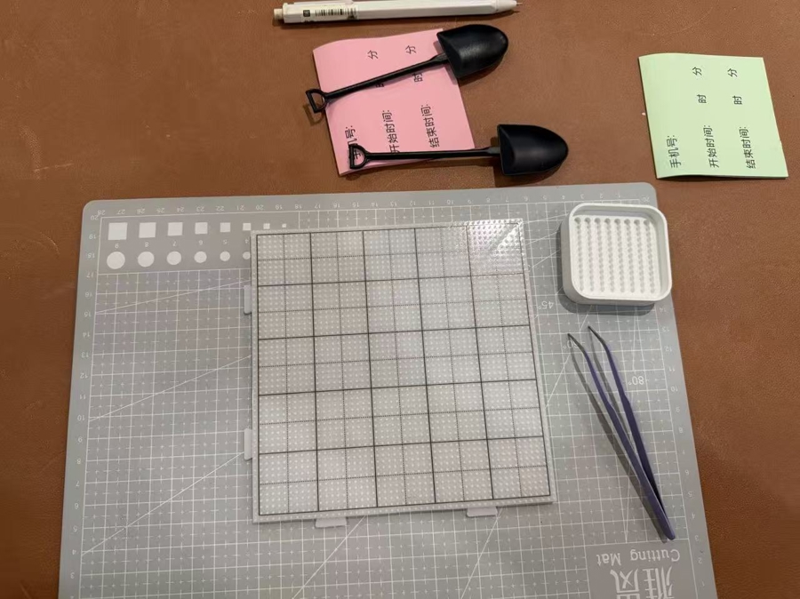 听闻记者是第一次体验“拼豆”,店员小杨拿来了拼豆用的工具——用于铲豆的豆铲,可以将豆子立起来的“立豆盘”,用于夹豆子的镊子以及拼豆用的豆板。“拼豆上手很简单的,首先要找到你想拼的图案及标有色号的图纸,根据颜色摆放就行。”小杨说完,还放了一张便利贴到桌上,用于记录拼豆所用的时长。记者还想追问,他已经走开去招呼别的客人,显然,在他眼里这些东西“一看就会”。