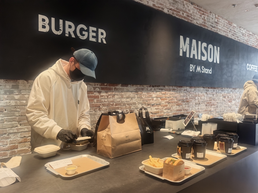 这一条款为新兴业态和创意布局打开了空间。去年下半年,M Stand概念店在徐汇梧桐区开业,这是一家集精品咖啡+现制汉堡+文创体验于一体的概念店,在布局设计时遇到了挑战。按照以往规定要求,饮品调制专区需专用清洗消毒设备,热食(汉堡)等简餐制售区也需单独设置,还有原材料清洗等环节需要考虑。但在仅60平方米的狭长空间内,生硬分割将极大压缩营业面积。