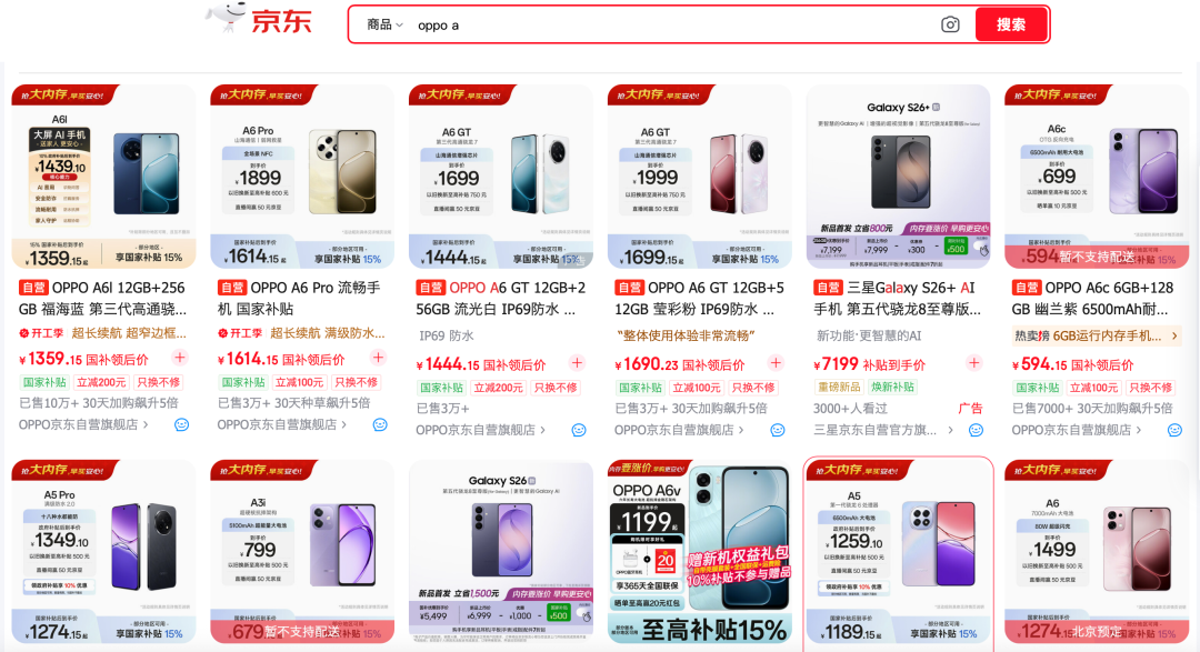 电商平台京东(09618.HK)骄横,OPPO触及调价的居品海报界面在加价公告讦布后,均打上了“抢大内存,早买宽心“的宣传语。