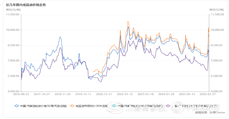 对此,浙商期货油品首席分析师张泽宇对上证报记者暗意,95号汽油插足“8元期间”,是俄乌冲破以来较高价钱。2021年3月到2026年3月,寰球95号汽油价钱举座呈“先涨后跌再回升”的飘荡走势,寰球主流运行区间约为6.8~9.9元/升。